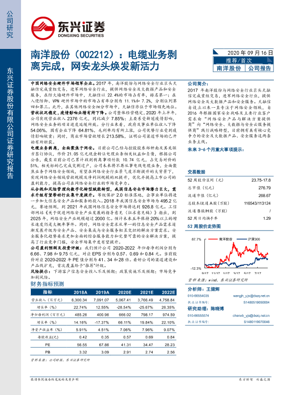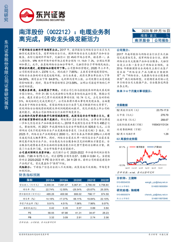 【东兴证券】【20200916】南洋股份(002212):电缆业务剥离完成,网安龙头焕发新活力-21页