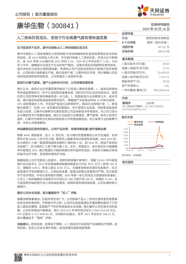 【天风证券】【20200916】康华生物-300841.SZ-人二倍体狂苗龙头,受益于行业高景气度有望快速发展-24页