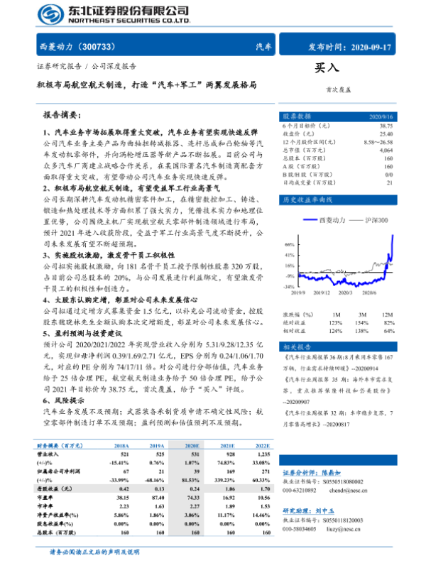 【东北证券】【20200917】积极布局航空航天制造,打造“汽车+军工”两翼发展格局-31页
