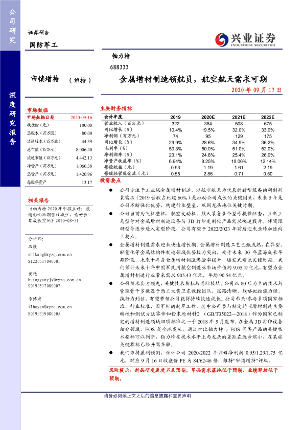 【兴业证券】【20200917】金属增材制造领航员,航空航天需求可期-53页