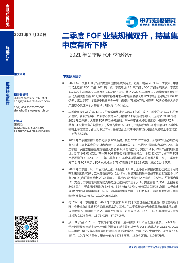 【申万宏源】【20210722】2021年2季度FOF季报分析:二季度FOF业绩规模双升,持基集中度有所下降-17页