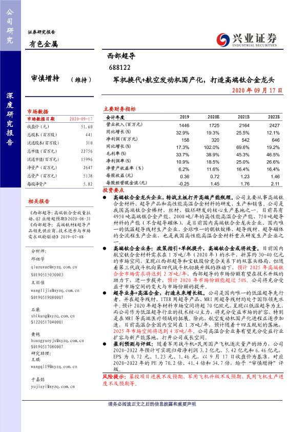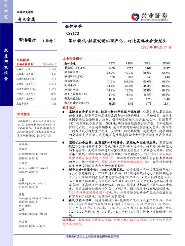 【兴业证券】【20200917】军机换代+航空发动机国产化,打造高端钛合金龙头-30页