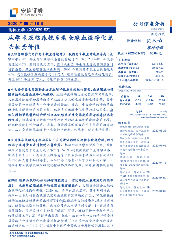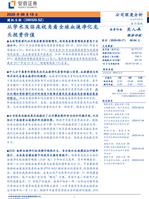 【安信证券】【20200918】从学术及临床视角看全球血液净化龙头投资价值-22页