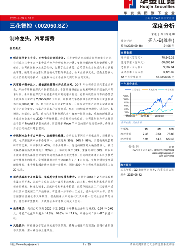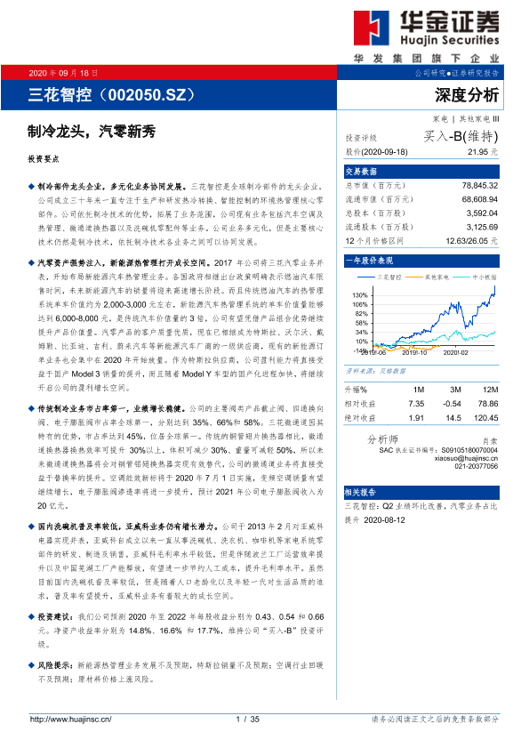 【华金证券】【20200918】三花智控:制冷龙头,汽零新秀-35页