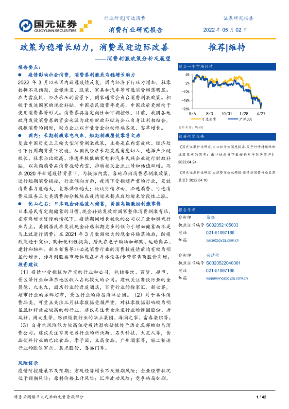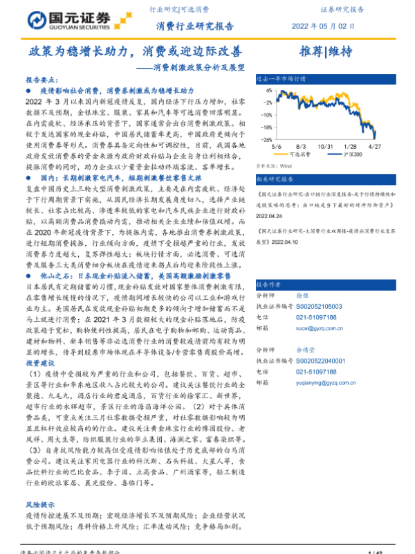 【国元证券】【20220502】消费行业刺激政策分析及展望:政策为稳增长助力,消费或迎边际改善-42页