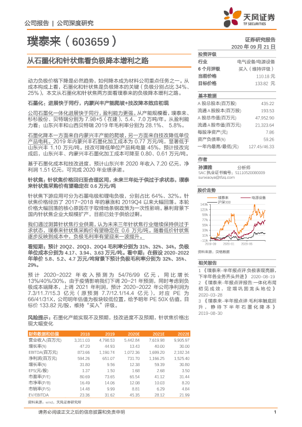 【天风证券】【20200921】从石墨化和针状焦看负极降本增利之路-22页
