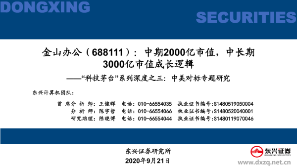 【东兴证券】【20200921】金山办公:中期2000亿市值,中长期3000亿市值成长逻辑——“科技茅台”系列深度之三:中美对标专题研究-59页