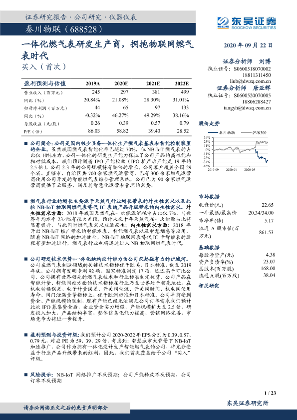 【东吴证券】【20200922】一体化燃气表研发生产商,拥抱物联网燃气表时代-23页