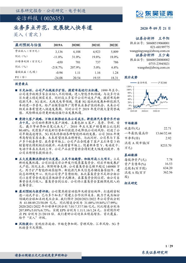 5G通讯 安洁科技 新能源汽车 无线充电 电子制造