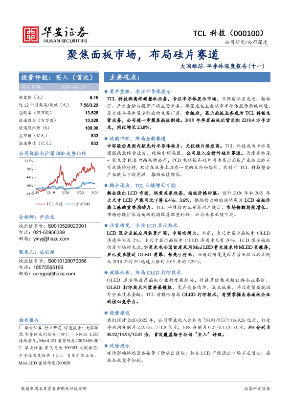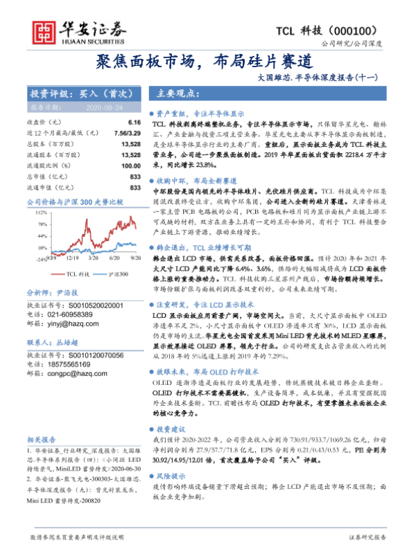 TCL科技 半导体 华安证券 硅片赛道 面板市场