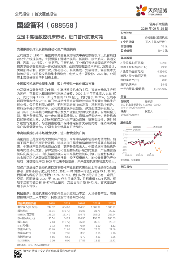 【天风证券】【20200925】立足中高档数控机床市场,进口替代前景可期-20页