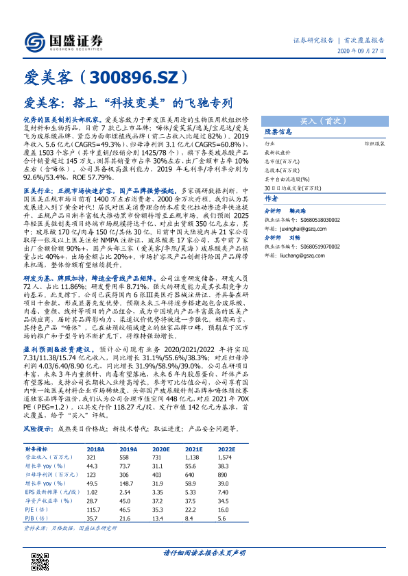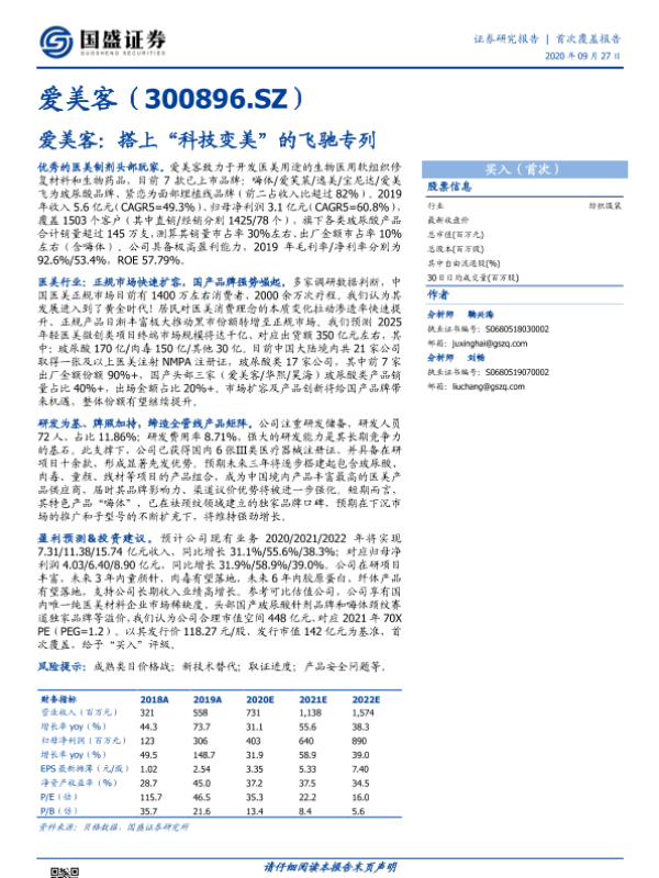 【国盛证券】【20200927】爱美客:搭上“科技变美”的飞驰专列-32页