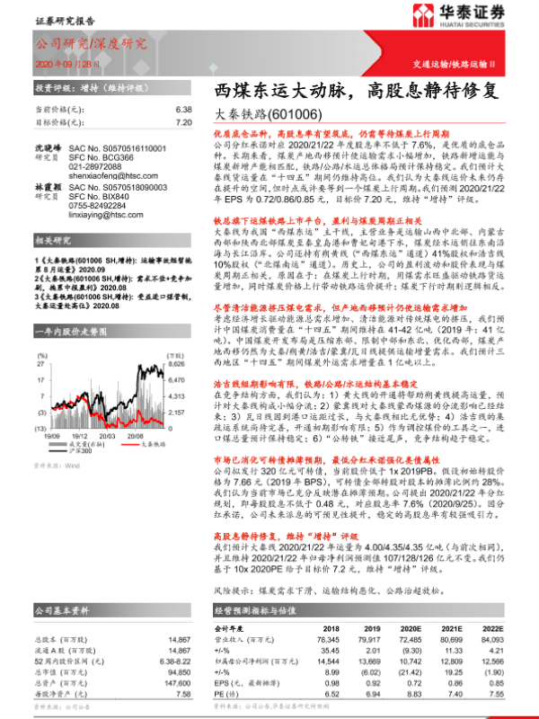 【华泰证券】【20200928】大秦铁路-601006.SH-西煤东运大动脉,高股息静待修复-26页