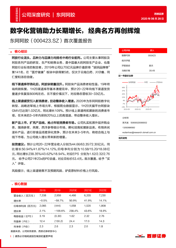 【西部证券】【20200928】20200928-西部证券-东阿阿胶-000423.SZ-首次覆盖报告:数字化营销助力长期增长,经典名方再创辉煌-28页