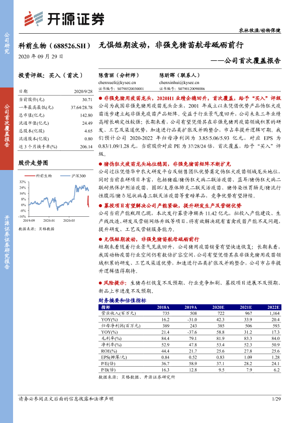【开源证券】【20200929】公司首次覆盖报告:无惧短期波动,非强免猪苗航母砥砺前行-29页