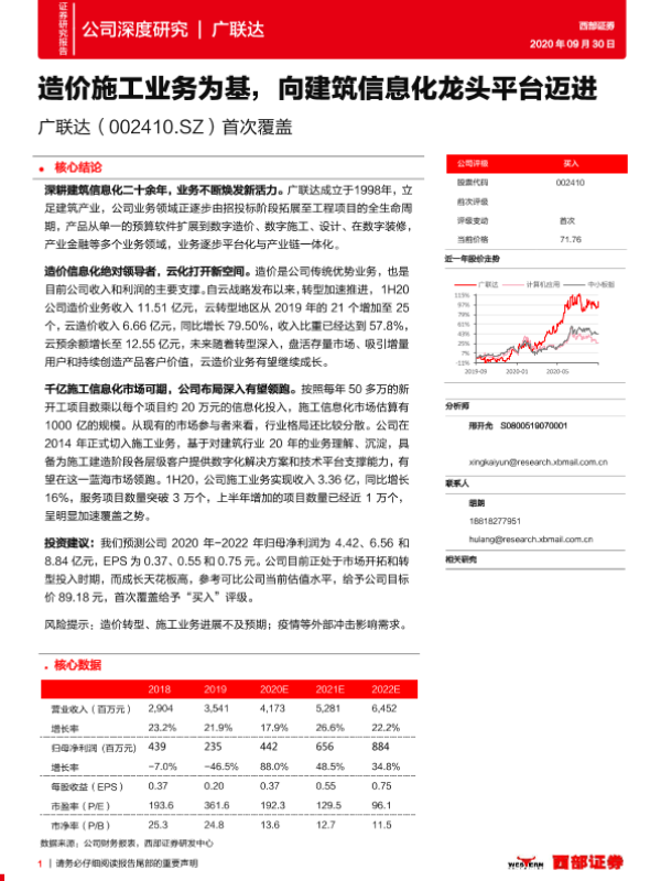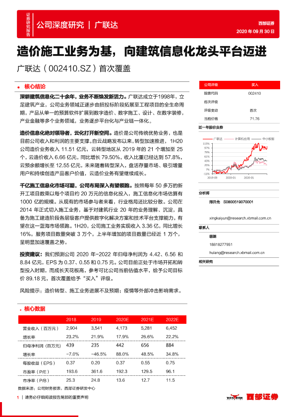 【西部证券】【20200930】20200930-西部证券-广联达-002410.SZ-首次覆盖:造价施工业务为基,向建筑信息化龙头平台迈进-33页