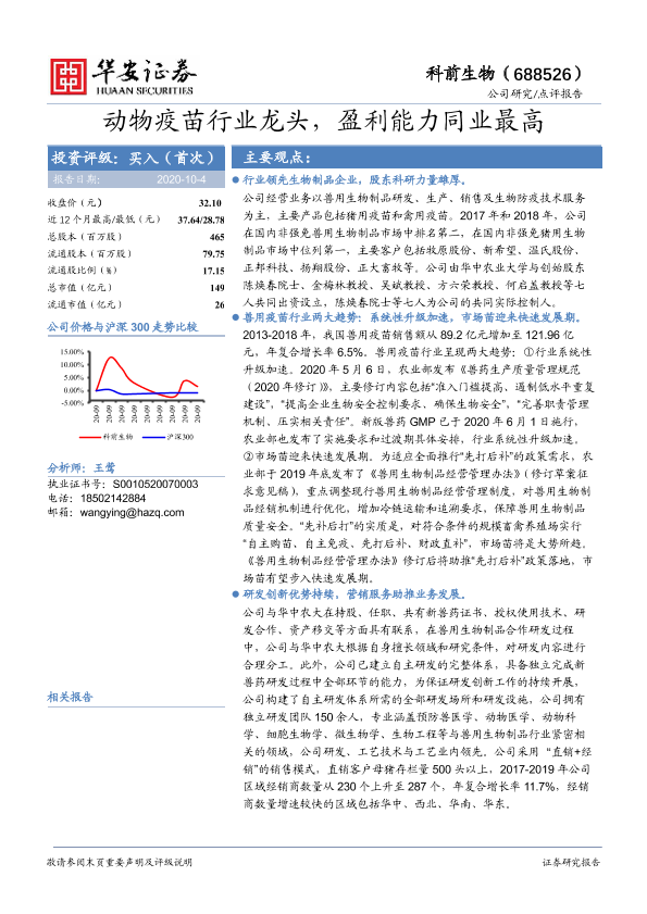 【华安证券】【20201004】动物疫苗行业龙头,盈利能力同业最高-31页