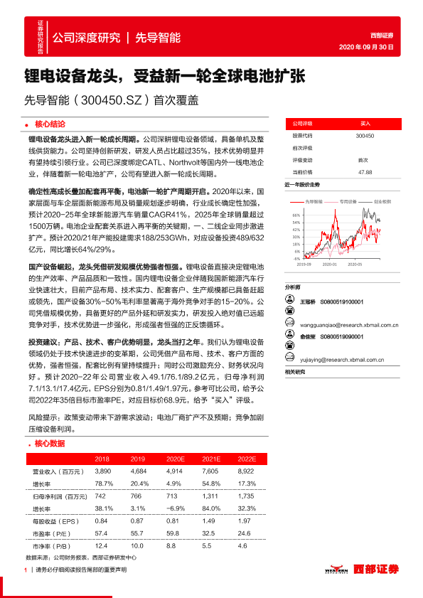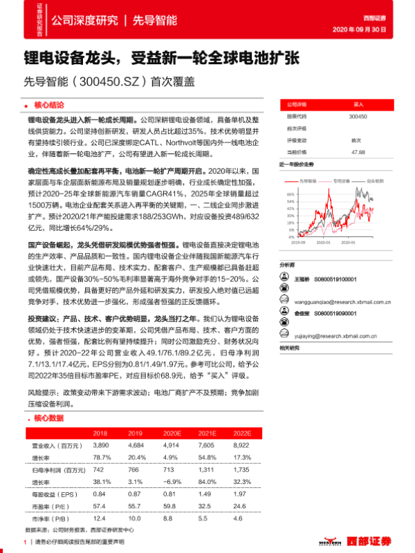 【西部证券】【20200930】先导智能-300450.SZ-首次覆盖:锂电设备龙头,受益新一轮全球电池扩张-43页