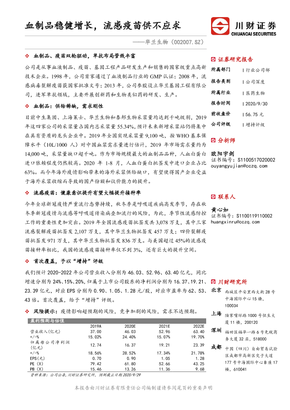【川财证券】【20200930】血制品稳健增长,流感疫苗供不应求-29页