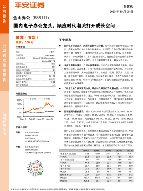【平安证券】【20201008】国内电子办公龙头,顺应时代潮流打开成长空间-34页