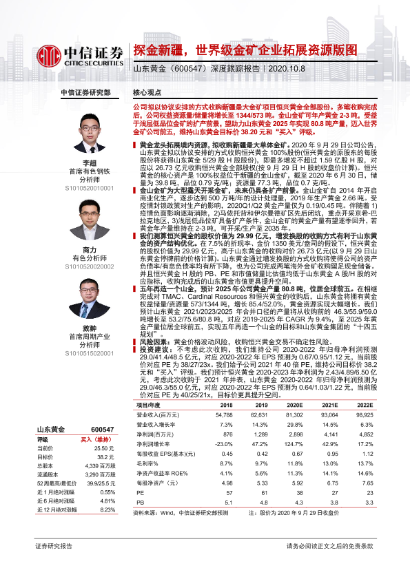 【中信证券】【20201008】20201008-中信证券-山东黄金-600547.SH-深度跟踪报告:探金新疆,世界级金矿企业拓展资源版图-17页