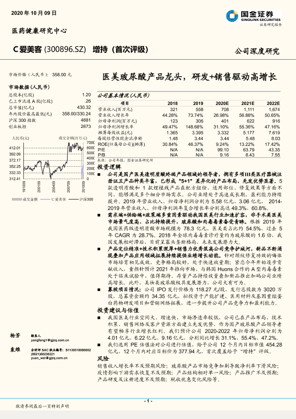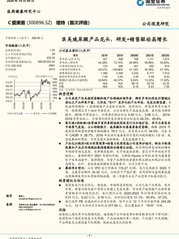 【国金证券】【20201009】20201009-国金证券-爱美客-300896.SZ-医美玻尿酸产品龙头,研发+销售驱动高增长-39页