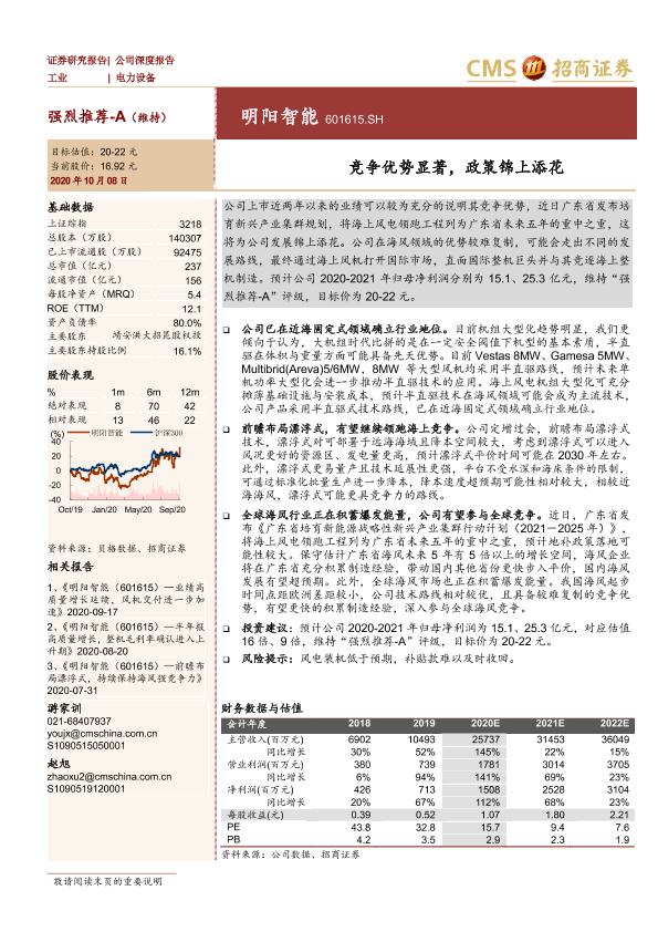 半直驱技术 政策支持 明阳智能 海上风电 竞争优势