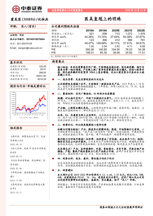 【中泰证券】【20201012】爱美客:300896.SZ-医美皇冠上的明珠-25页