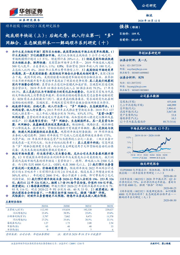 【华创证券】【20201012】起底顺丰快运(上):后起之秀,收入行业第一;“多”网融合,生态赋能样本——解码顺丰系列研究(十)-33页