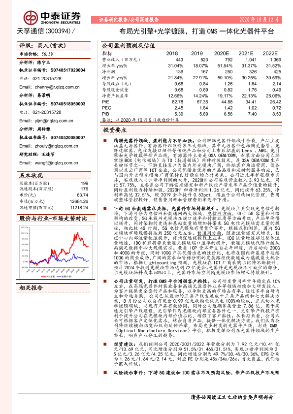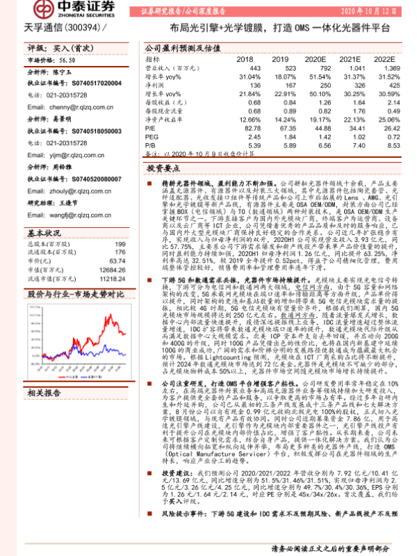 【中泰证券】【20201012】布局光引擎+光学镀膜,打造OMS一体化光器件平台-32页