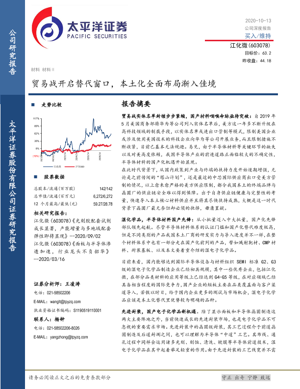 半导体材料 国产化 江化微 湿电子化学品 贸易战