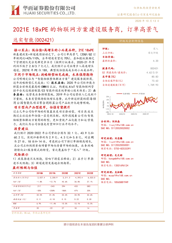【华西证券】【20201013】20201013-华西证券-达实智能-002421.SZ-2021E18xPE的物联网方案建设服务商,订单高景气-26页