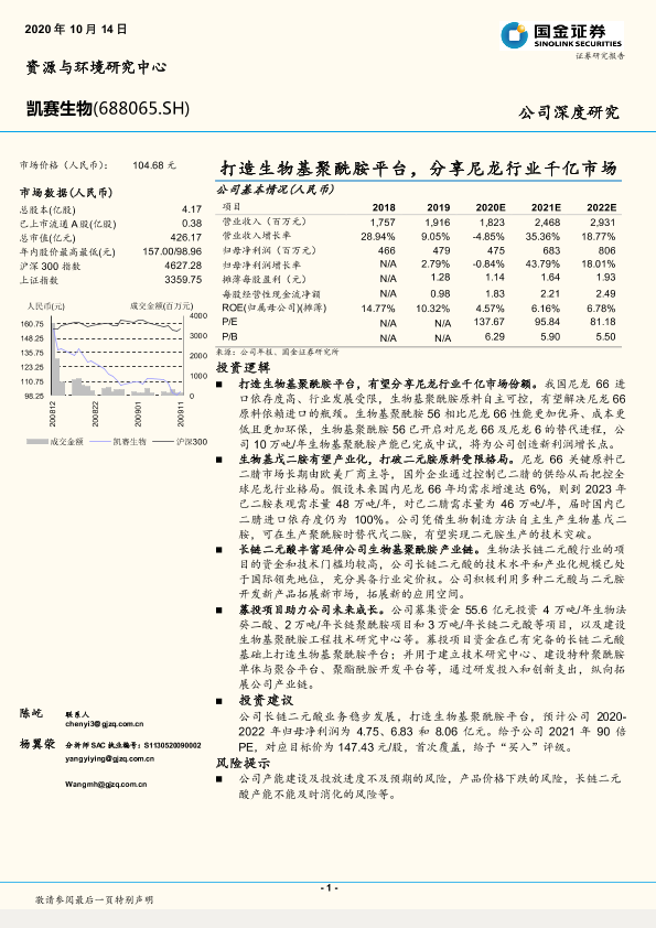 【国金证券】【20201014】打造生物基聚酰胺平台,分享尼龙行业千亿市场-20页