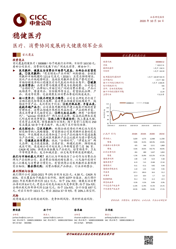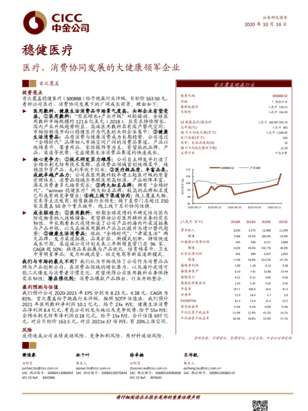 【中金公司】【20201014】稳健医疗-医疗、消费协同发展的大健康领军企业-32页