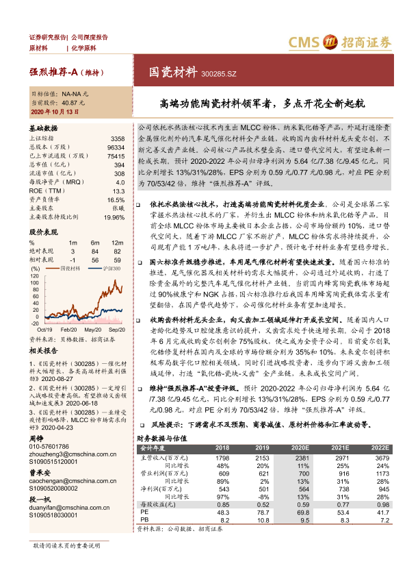 【海通证券】【20201013】高端功能陶瓷材料领军者,多点开花全新起航-30页