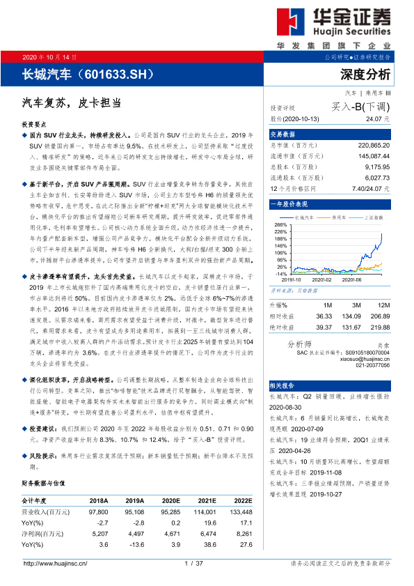 【华金证券】【20201014】长城汽车(601633.SH)深度分析:汽车复苏,皮卡担当-37页