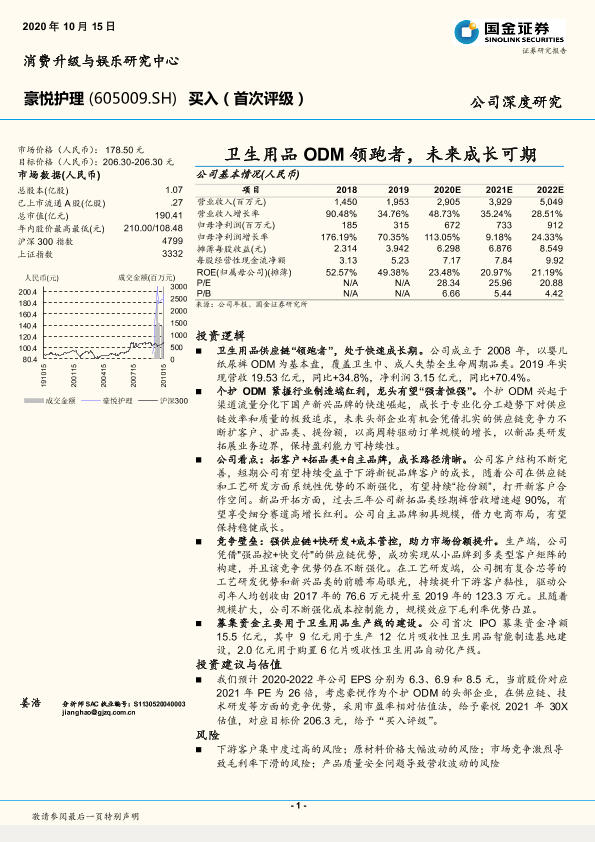 【国金证券】【20201015】豪悦护理-605009.SH-卫生用品ODM领跑者,未来成长可期-28页