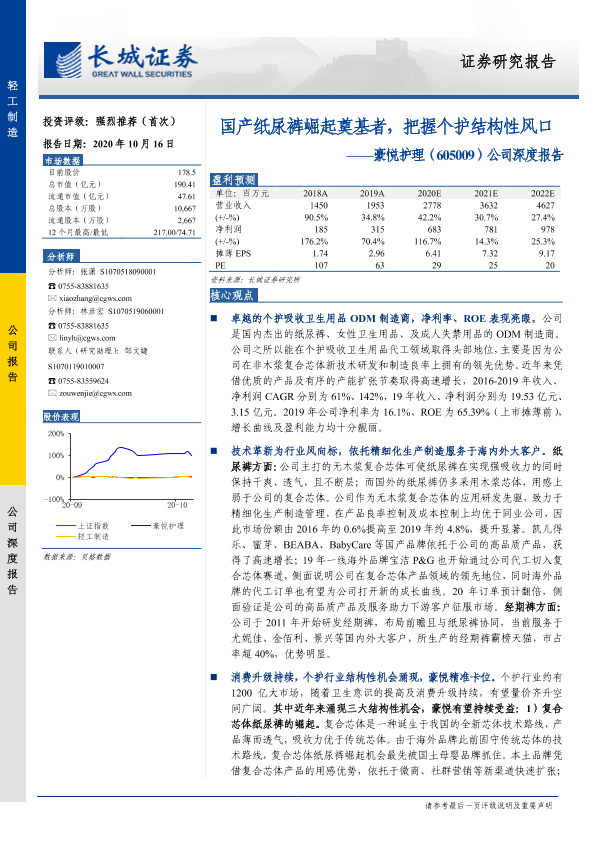 【长城证券】【20201016】20201016-长城证券-豪悦护理-605009.SH-公司深度报告:国产纸尿裤崛起奠基者,把握个护结构性风口-37页