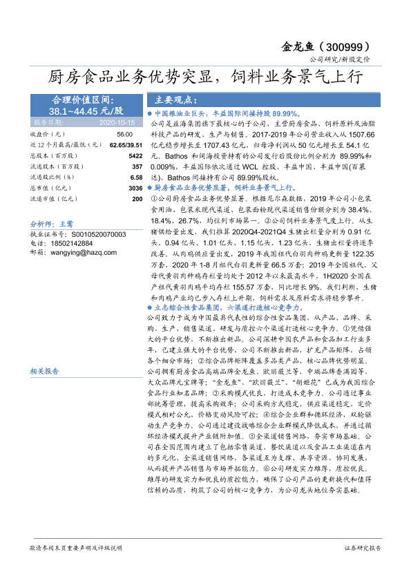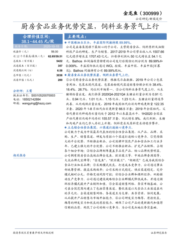 【华安证券】【20201015】厨房食品业务优势突显,饲料业务景气上行-30页