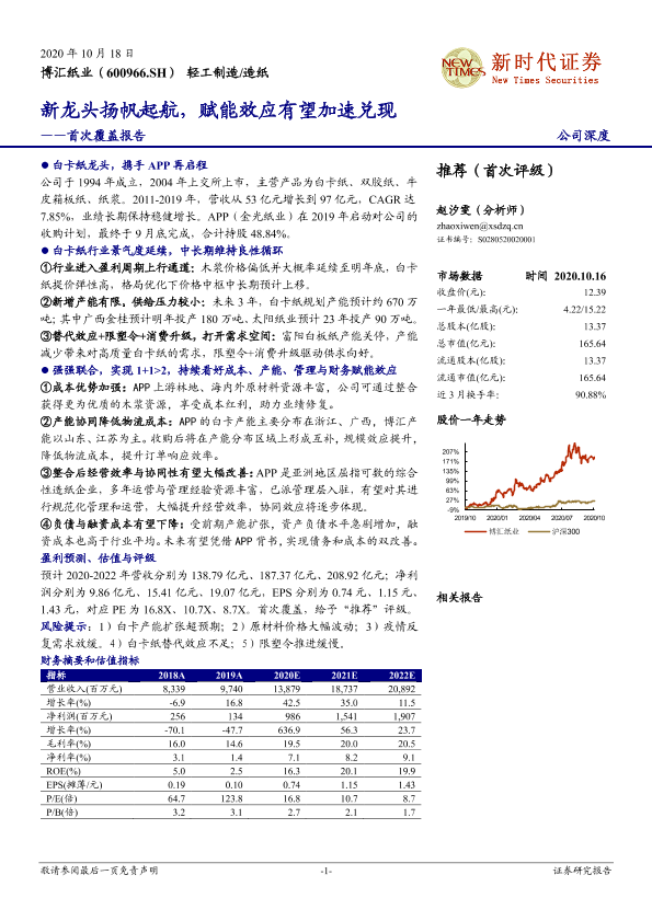 【新时代证券】【20201018】20201018-新时代证券-博汇纸业-600966.SH-首次覆盖报告:新龙头扬帆起航,赋能效应有望加速兑现-28页