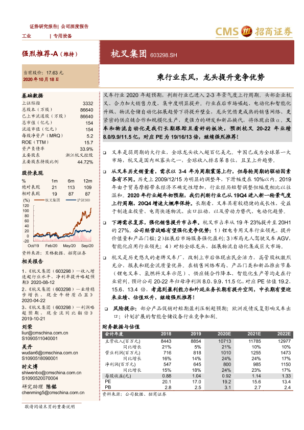 叉车行业 智能化 杭叉集团 电动化 竞争优势