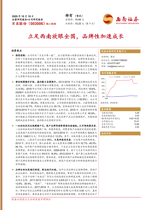 品牌成长 市场分析 百亚股份 盈利预测 轻工制造
