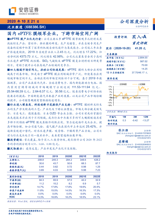 【安信证券】【20201021】国内ePTFE膜领军企业,下游市场空间广阔-26页