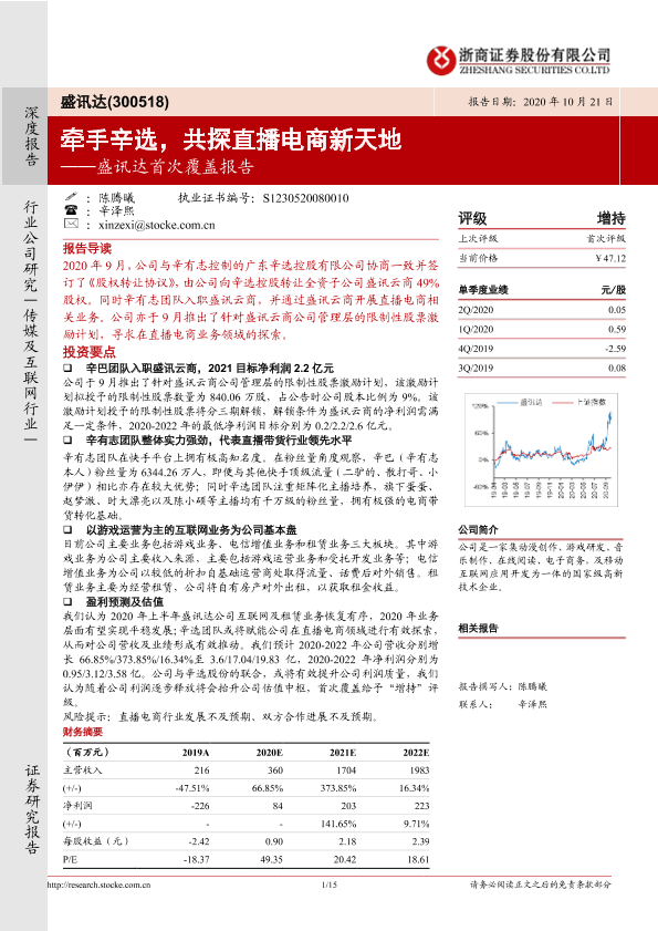 【浙商证券】【20201021】盛讯达首次覆盖报告:牵手辛选,共探直播电商新天地-15页