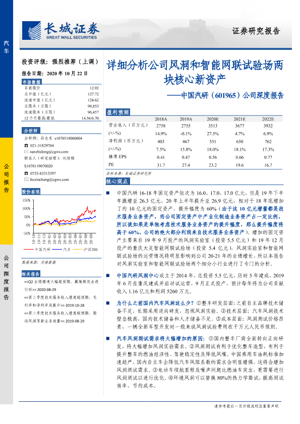 【长城证券】【20201022】20201022-长城证券-中国汽研-601965.SH-公司深度报告:详细分析公司风洞和智能网联试验场两块核心新资产-38页