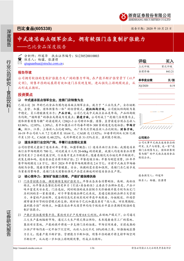 【浙商证券】【20201023】巴比食品深度报告:中式速冻面点领军企业,拥有较强门店复制扩张能力-36页