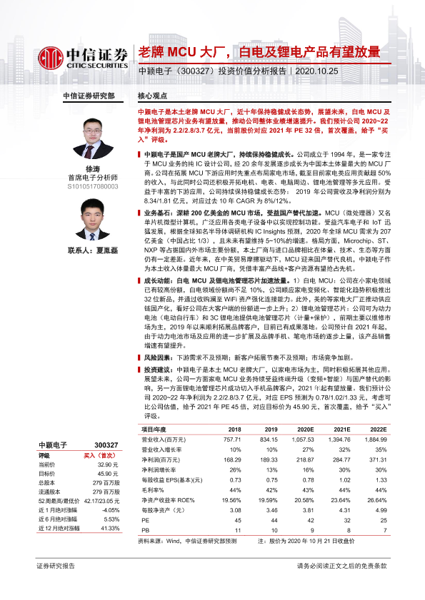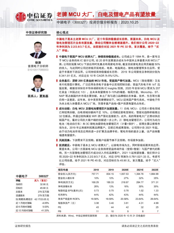 【中信证券】【20201025】老牌MCU大厂,白电及锂电产品有望放量-25页