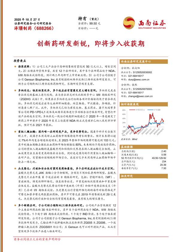 【西南证券】【20201027】泽璟制药-688266.SH-创新药研发新锐,即将步入收获期-39页