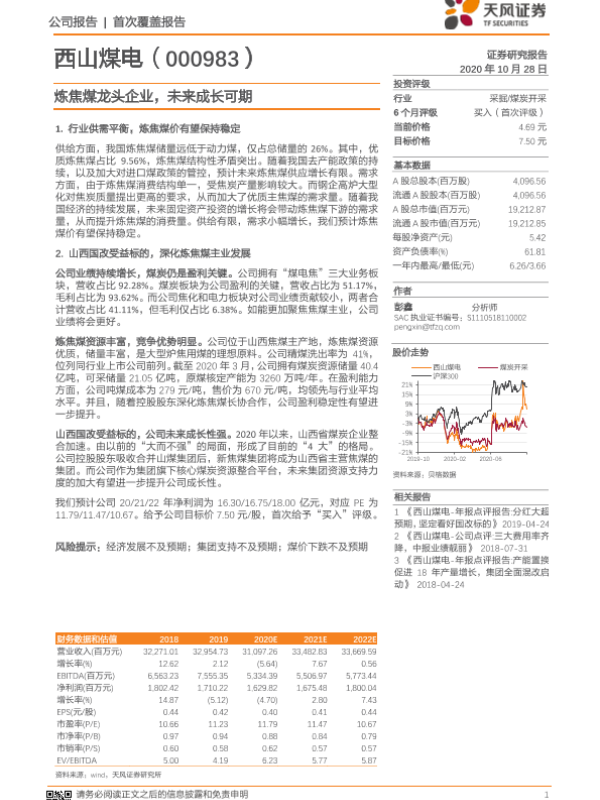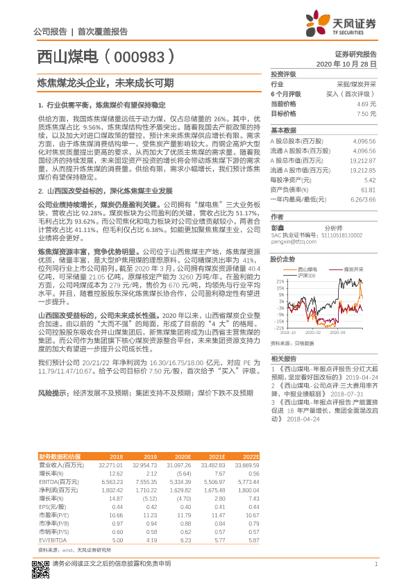 【天风证券】【20201028】20201028-天风证券-山西焦煤-000983.SZ-炼焦煤龙头企业,未来成长可期-21页