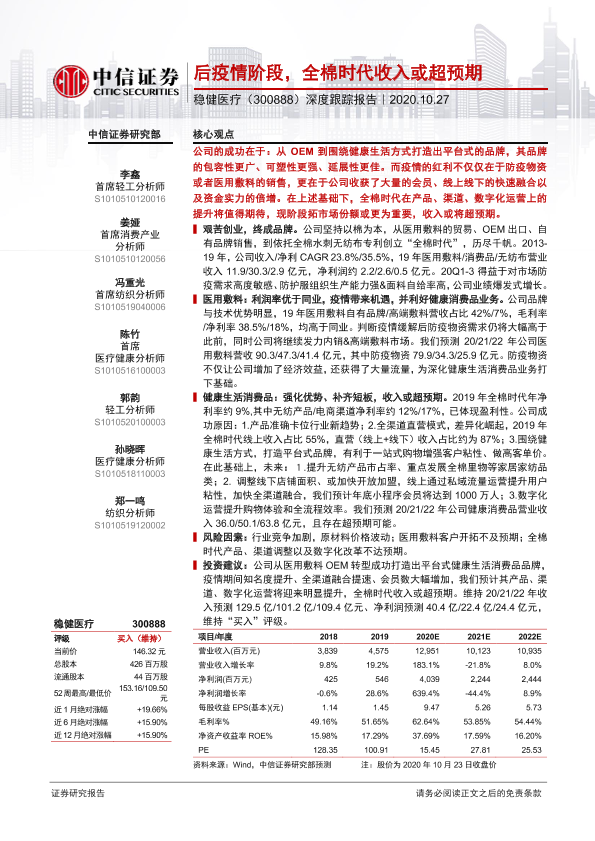 全棉时代 医疗健康 消费品 疫情应对 稳健医疗